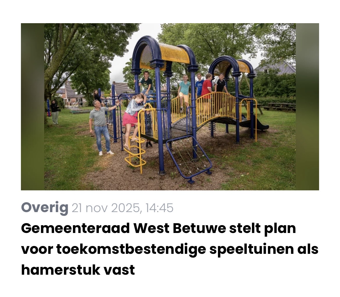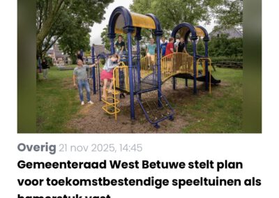 - 112 speeltuinen weten te behouden (met bijna 900 speeltoestellen in totaal) door financiële ondersteuning, strikt onderhoud en vervanging van toestellen. In 2025 zijn er 102 nieuwe speeltoestellen geïnstalleerd.
