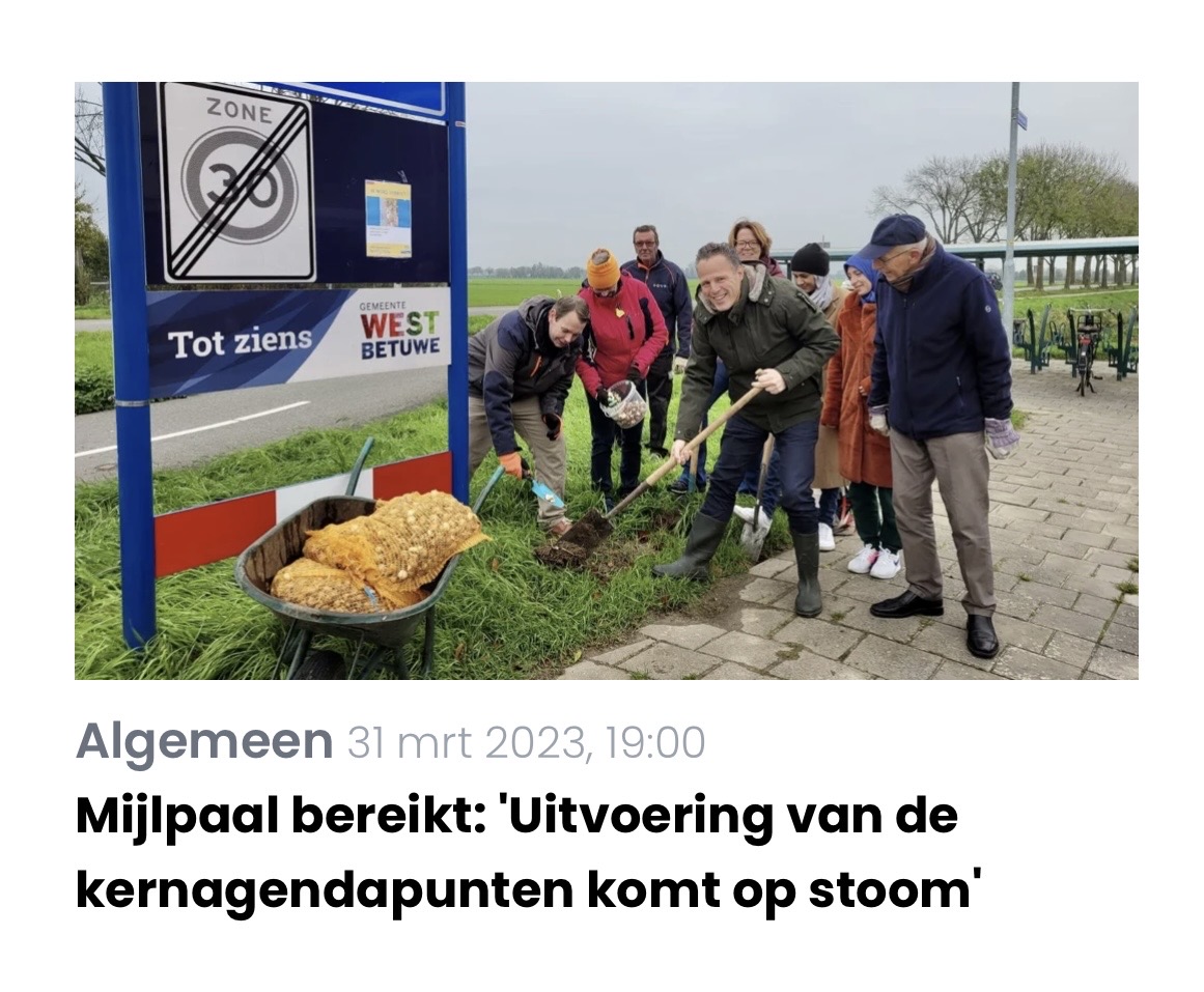 Dorpsbelangen West Betuwe wil bouwen aan kernen die zelfbewust, verbonden en toekomstbestendig zijn. Kernen waar voorzieningen, ontmoeting en samenhang vanzelfsprekend zijn. Waar jongeren, gezinnen en ouderen zich thuis voelen, elkaar ontmoeten en onderdeel zijn van een levendige gemeenschap. West Betuwe groeit, maar onze kernen bloeien en daar blijven we samen voor zorgen.